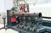 Cutting Machine : 1.Six CNC axes(Left/Right,Front/Rear,Up/Down.Rotation,Torch-Twisting,Torch-Lifting)perform cutting pipe profile.And also perform successive cutting by program,that is to connect many cutting conditions into one program so as to successively perform complex cutting process for body-pipe.branch-pipe end etc. 2.Self-centering chunk for automatic clamping pipe.no any manual clamping 3.Pipe upper-surface touch-sensor and pipe side-surface touch-sensor for detecting the pipe deflection such as roundness and straightness at cutting position ,and automatic adjust torch according to pipe conditions for getting a good cutting precision. 4.Independent torch-lifting axes can make compensation for torch position ,which ensures the relative position between torch and pipe for improving cutting quality. 5.Adjustable support-rollers can be up or down by screw,which make operation simple and reliable 6. Date input by touch screen.Only input the parameters about cutting speed,every axial speed can be automatically adjusted without any manual operation.The machine has origin-repositioning and safe-detecting functions.If any abnormality control system will be automatically locked and give some prompts for avoiding wrong operationg.Max.99 cutting conditions can be recorded. Model 660 Number of CNC axes 6 Diamete of pipemm 60-600 Thickness:by air plasmamm (must be drilled if thicknessis between 17-25mm By gasmm 5-50 Length of pipemm 900-6000(12000mm as option) Max pipe weigheKG 25005000kg as option Min.intersection angle 20° Chukc 5 jaws Through-hole in chuckmm 220 Electronic clamping unit for chuck One set Pipe support rollers with gauge Four groups Bevelling angle 30°-150° Colorful touch-screen and controller for beveling angle One set Air-plasma cutting machine One set Gas cutting torch One set Max.longitudinal speed mm/min 10000 Up-down stroke mm 350 Up-down speedmm/min 900 Front-rear stroke (mm) 350 Front-rear speed mm/min 1500 Torch lift stroke (mm) 80